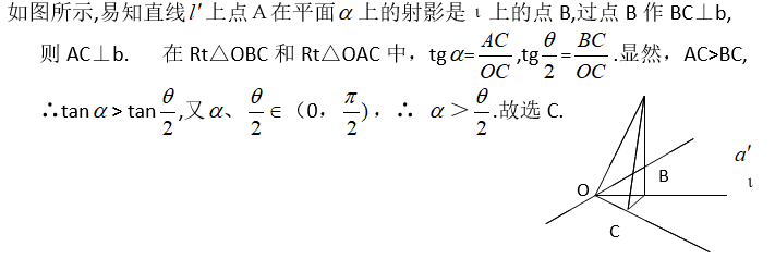 (4) 设A为平面a外任一点,AB⊥a,垂足为B,AC⊥b,垂足为C,则∠BAC=q或∠BAC=p-q;