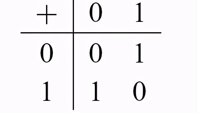 元素有可能是它自己的逆元素。考虑用二进制加法运算由0和1组成的群。它的表为:
