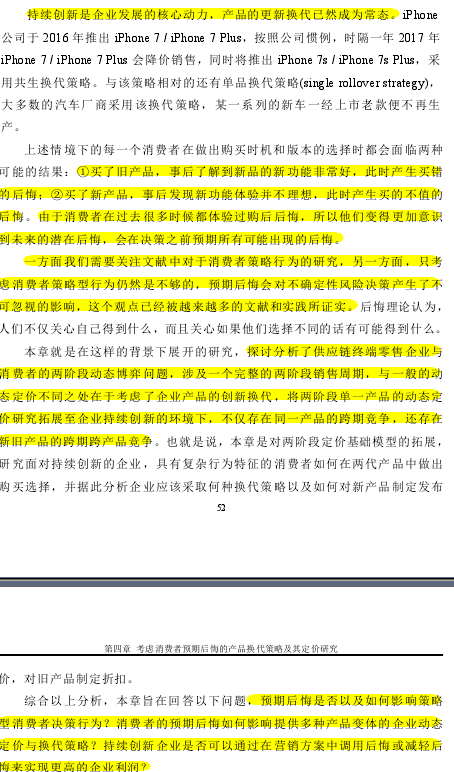 In the last issue, we read the third chapter of the doctoral dissertation "Research on product pricing considering consumers' expected regret": two-stage price reduction management considering consumers' expected regret. In this issue, we will read the fourth chapter: Research on product replacement strategies and pricing considering consumers' expected regret.