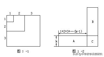 当n=2时,把长为1的正方形看作第1层壳,在它上面再镶上第2层壳,构成边长为1+2的正方形,面积为(1+2)²,这层壳的面积为8,因此(1+2)²=1+8=1³+2³,再镶上第3层壳(图1—1)