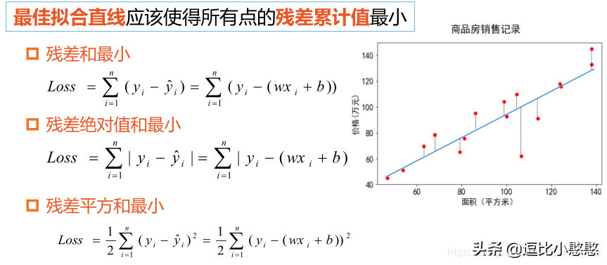 w:权重b:偏置值最佳拟合直线:拟合误差和最小