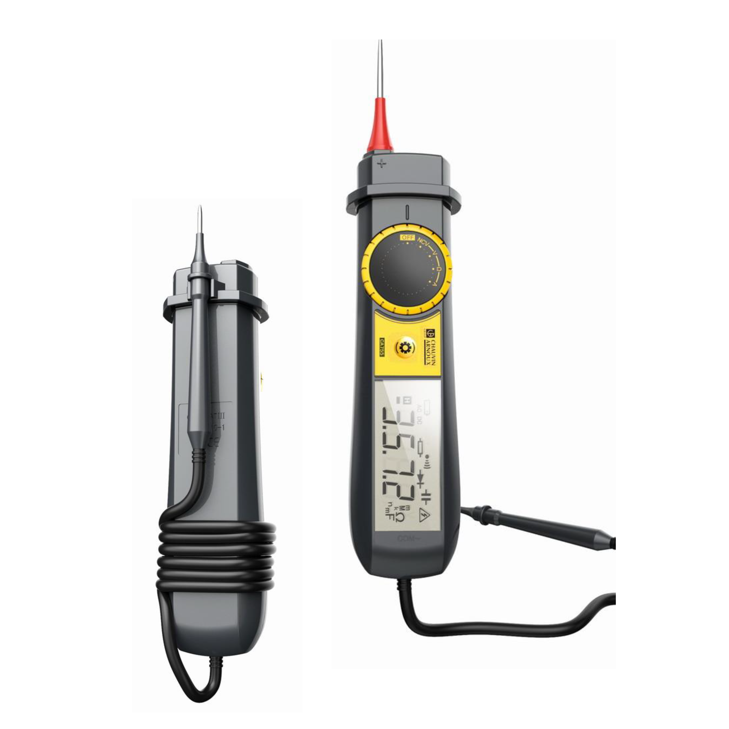 C.A.电压检测器以其开拓性的内部元件排布方式,改变电池仓形式,有效缩小了产品尺寸,降低了制造成本。透过简洁的人机交互界面,使得用户可以清晰直观的读取显示数据,机身可收纳探针,以便于整体收纳,降低包装运输的成本。整个检测器从环保角度出发,依托企业的社会责任感,产品主体部分使用可回收塑料材质。产品表面磨砂质感通过模具直接注塑制成,通过流畅的机身曲线,提升了用户使用产品时的舒适的,实现了形式与功能的有机统一。