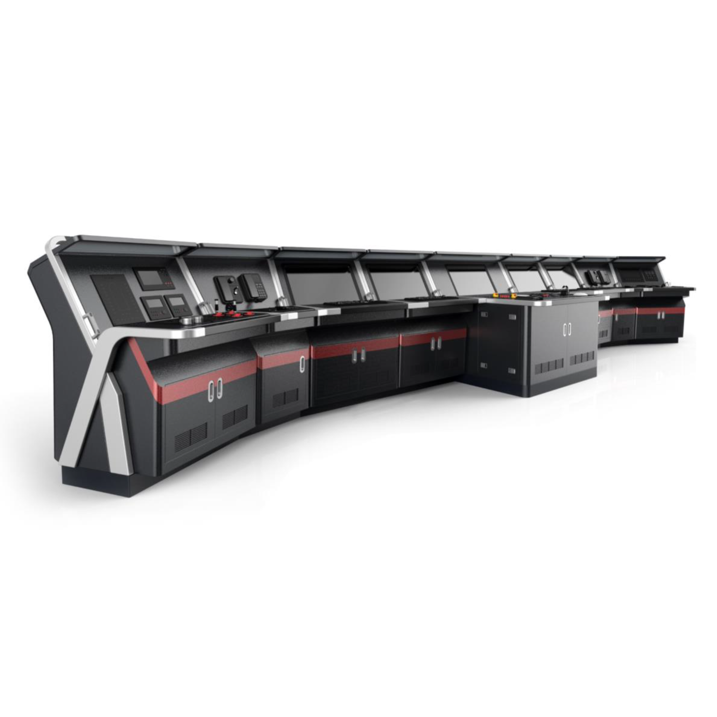 此款控制台以人机工程学作为设计的切入点,经过计算、推敲、模拟确定控制台的操作尺寸和按键排布。产品颜色采用深色系,符合其使用环境。造型上突破常规风格,拉伸体作为产品的基础形态,表达沉稳可靠的设计感,在此基础上进行切割分键,上部和前端的扶手语言延伸交叉,保证产品的整体性,同时为产品创造了独特的X形设计语言,边上的包 裹造型实现了形式与功能的结合。产品外观用整块钣金件包裹,配合圆角的设计语言,在硬朗的线条上让产品多了一份灵性,尽显轻盈透彻之美感。