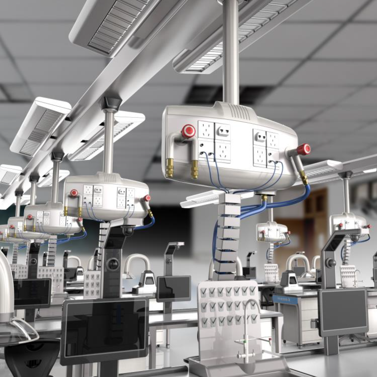 传统基础实验室功能存在较大不足,无法满足师生现代化实验的操作需求。为此木马团队进行了大胆的开拓性设计,采用灵活性较高的吊顶式吊架系统,推出了崭新的实验室环境与实验组合模式。在教育相关部门、教授专家、教研员和一线学科老师的意见和建议基础上,我们形成了建设”智慧学科实验室”的总体思路。通过提升实验室的构造层级,进而提升实验教学便利性、安全性、开放性,拓展实验效果,激发师生开展实验教学热情。结合互联网+模式,为化解实验教学中存在的一些需要解决的问题、实现教学模式的变革创新提供基础性的条件支撑(学生实验基础设备任意组合)。