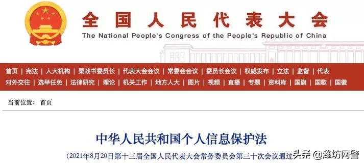 《个人信息保护法》已由第十三届全国人大常委会第三十次会议通过,自2021年11月1日起施行。
