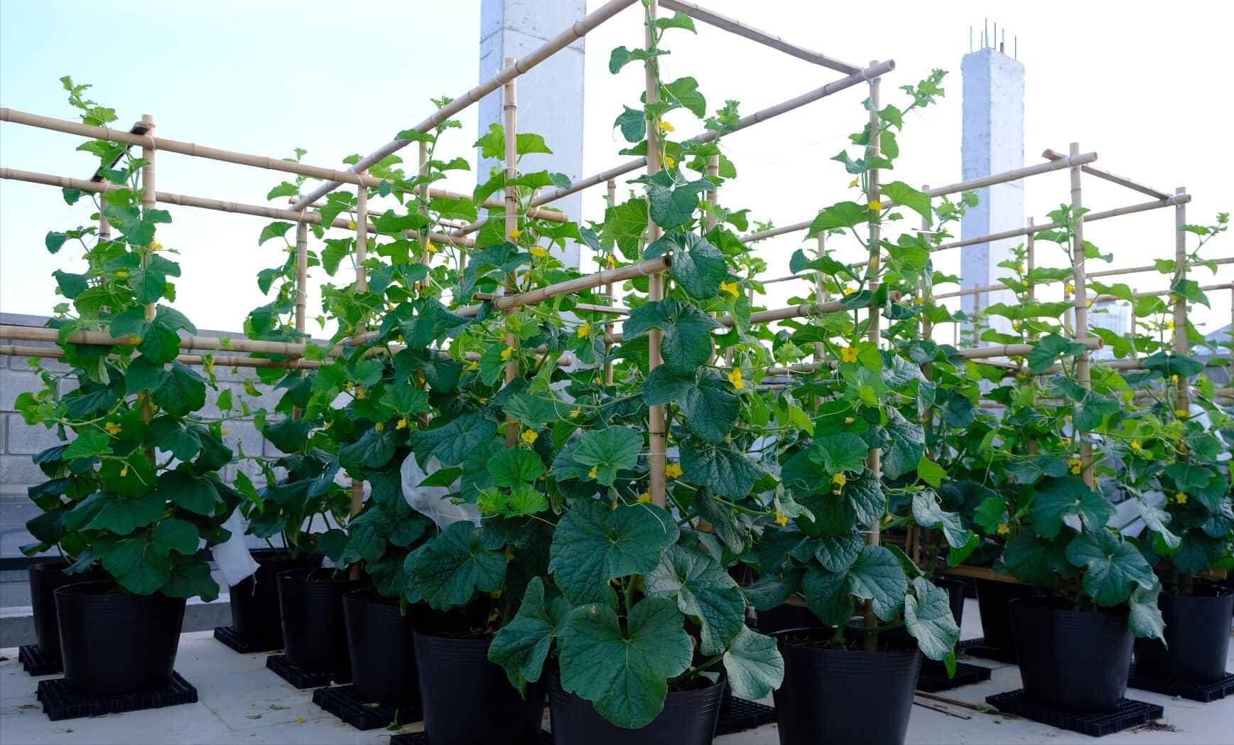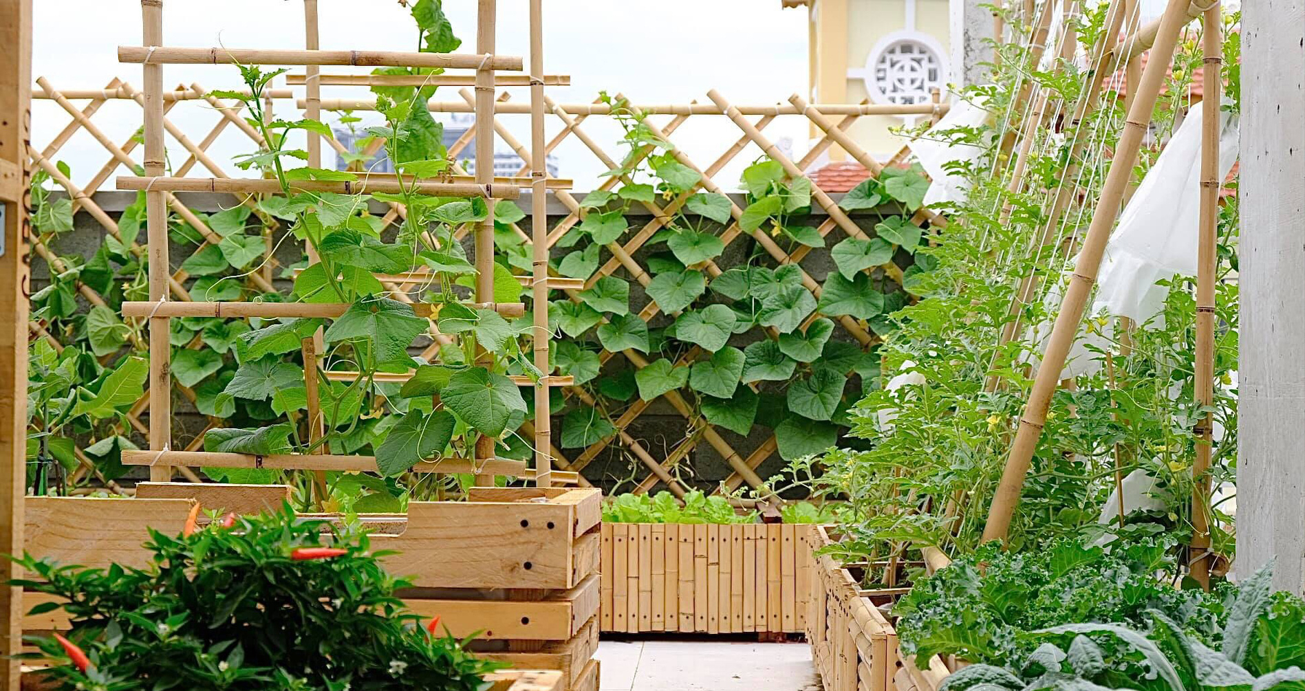 起初,她只种了几朵花,渐渐地她种出了各种干净的蔬菜,喜欢收集新品种,为露台空间创造了多样性。更具体地说,她选择了更多种类的竹子、木棍和丈夫一起组装,所以花园不仅绿意盎然,而且还具有装饰艺术的特殊标志。