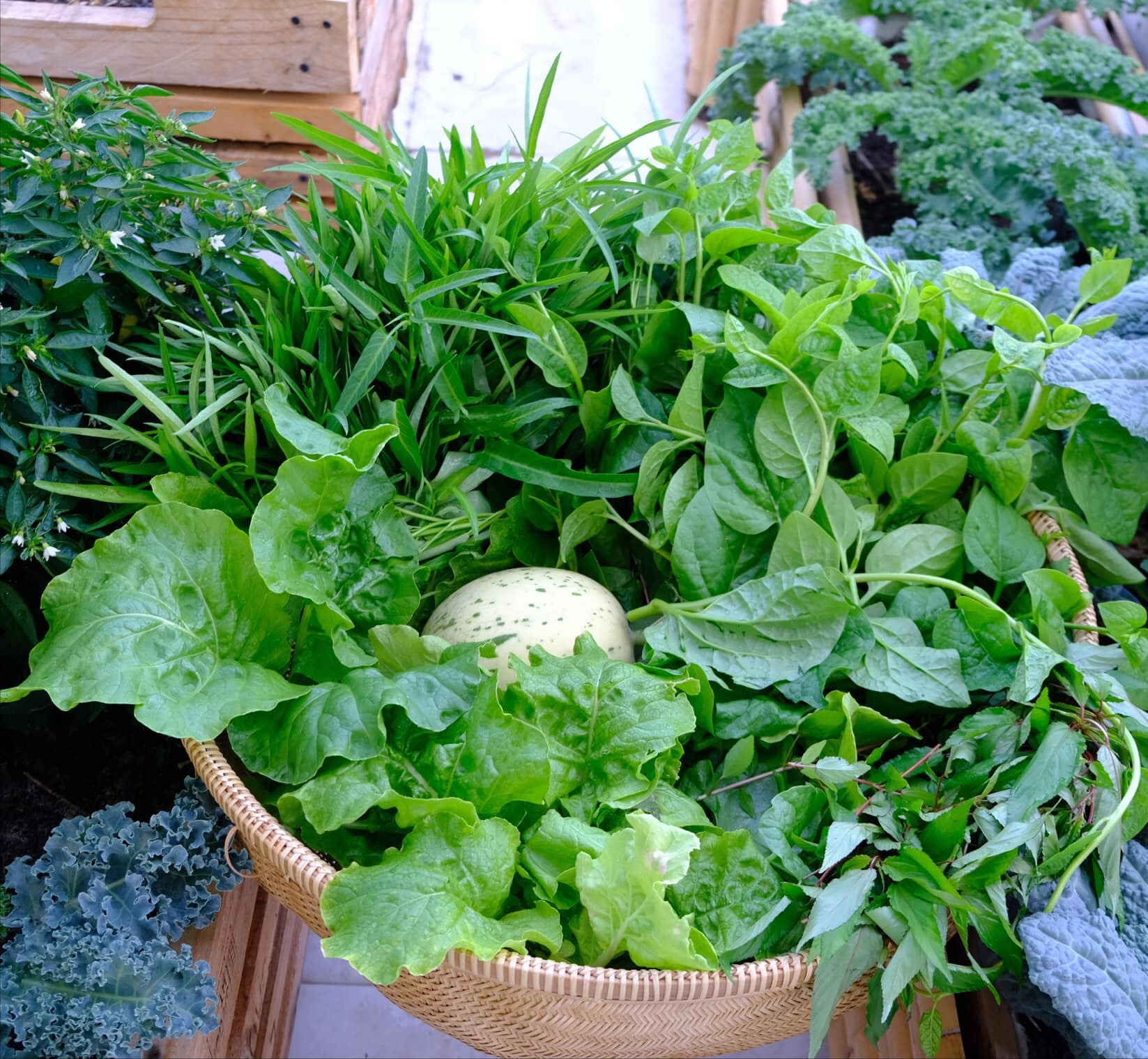 目前,多亏了一个凉爽的绿色菜园,即使她的家人处于抗疫封锁中,她也不必担心去市场。每顿饭都是自家种的蔬菜,家里的每个人也都觉得更加美味和安全。