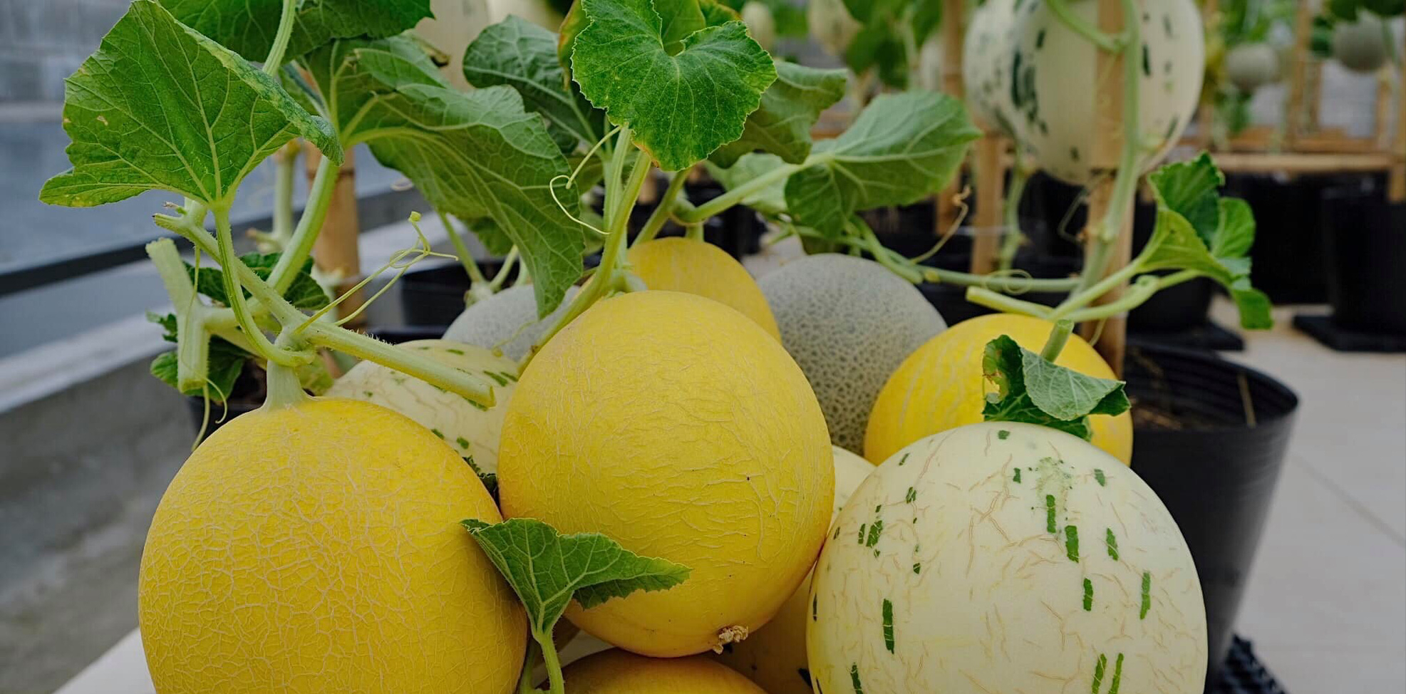 新鲜的绿色哈密瓜树盛开,捕捉美丽的瞬间。