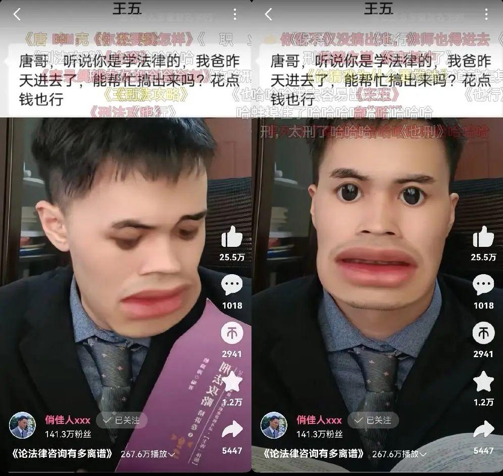 其他UP主由此创作了鬼畜视频《律政先疯》,融合众多经典台词,目前播放超153万。甚至小唐本身的长相也是一个话题点,还有美妆博主做了仿妆。