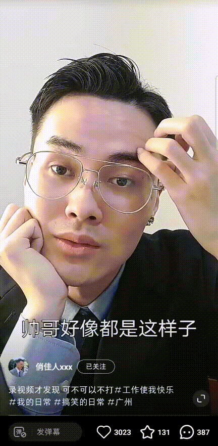 他随手一发的感叹自己太帅的自恋视频,都有超过3000的点赞和100多个收藏,连他自己都纳闷,这种视频为什么会有人收藏。
