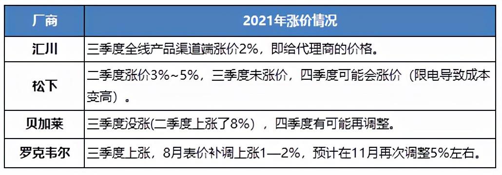 2021年中国PLC市场主要厂商产品涨价情况-部分