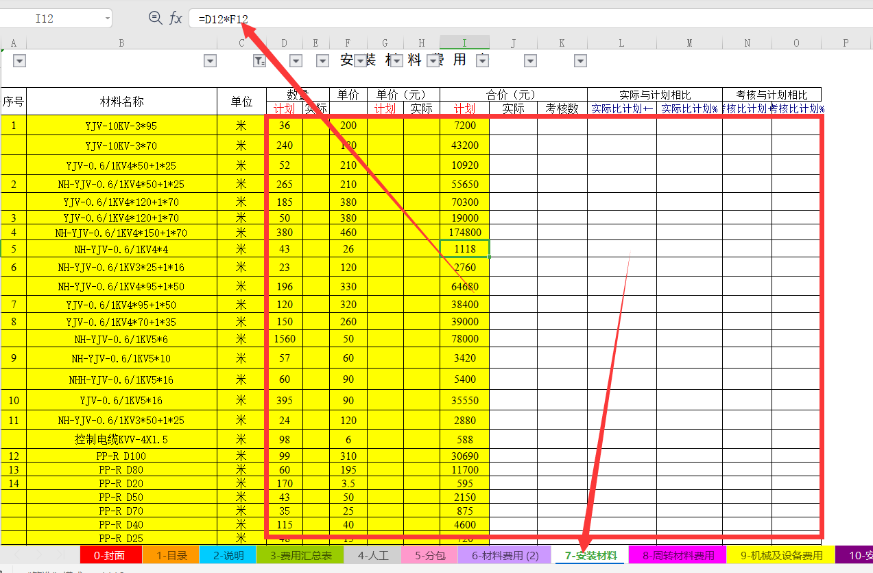 5、成本费用分析表五:建筑施工项目涉及的安装材料费用核算分析