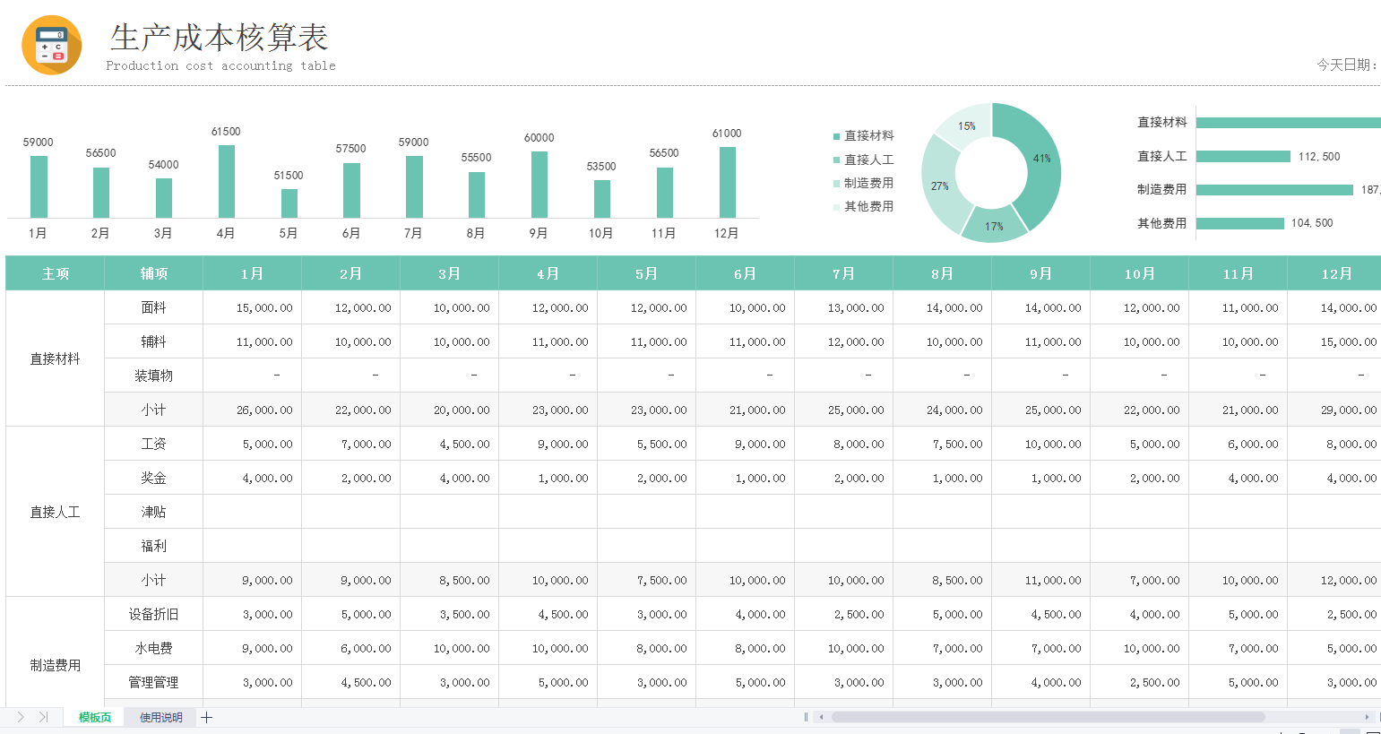2、成本费用分析表二:建筑施工项目涉及的人工费用核算分析表