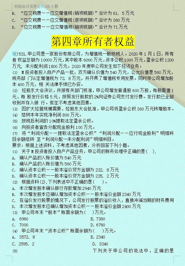 今天小编为大家整理的一份初级会计实务的必刷题,一共有五百道,一起来看看吧。