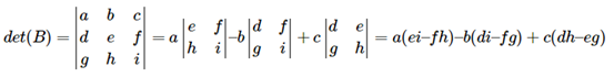 这个公式记起来有点乏味。 但是不要担心,这个公式来自于3×3矩阵的行列式。