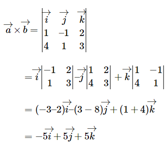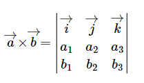 现在, 我们可以把向量a→和b→写成3×3矩阵的行列式形式,如下所示: