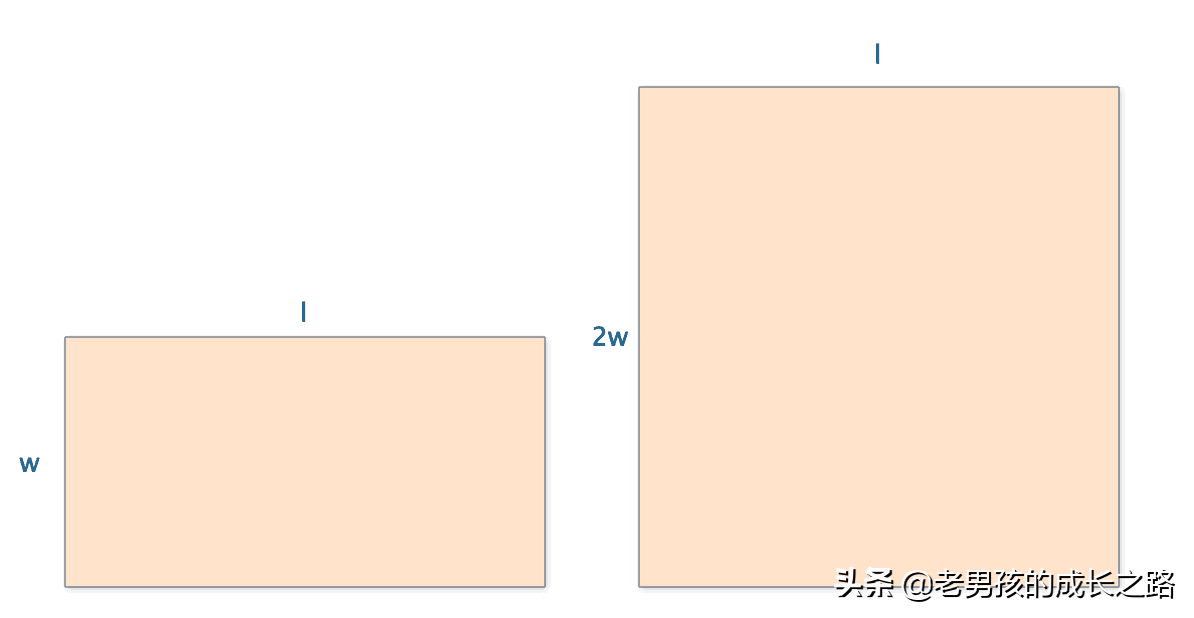 小林发现,长加倍后,面积也明显加倍了,于是得到如下等式: