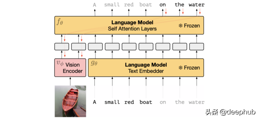 本文提出的思想相当简单:训练一个语言模型,使其参数保持不变,然后训练一个图像编码器将图像编码成提示语句,以便该语言模型执行特定的任务。我喜欢将其概念化为“学习一个图像条件提示(通过神经网络图像),以便模型执行任务”。