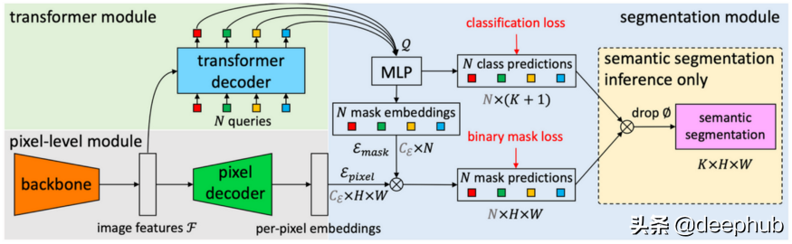 现代语义分割通常被构建为每像素分类任务(即为属于汽车、道路或鸟类的每个像素分配一个类),然后执行实例级分割(即找到在每张图片的掩码)会被建模为一个二元掩码分类任务。 MaskFormer 建议直接学习一组二元掩码(就像在实例级分割中一样),然后是每个掩码的分类步骤,在不显式逐像素分类的情况下显示很好的结果。