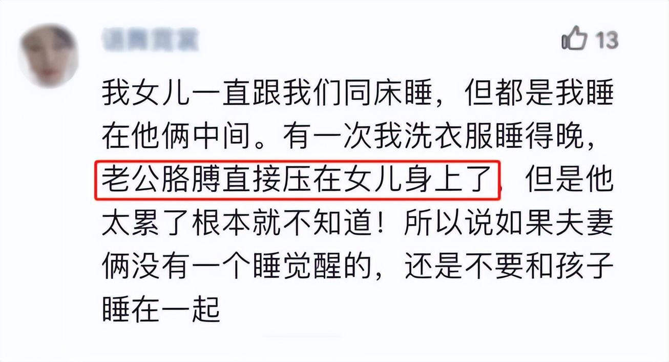 谁都不想伤害自己的孩子,睡觉翻身也是自己无法控制的事,归根结底是大人和孩子同睡危险性太大了。