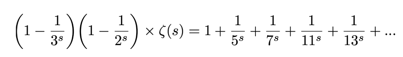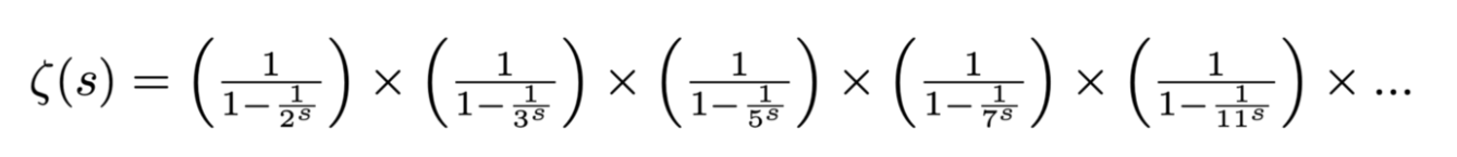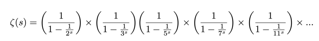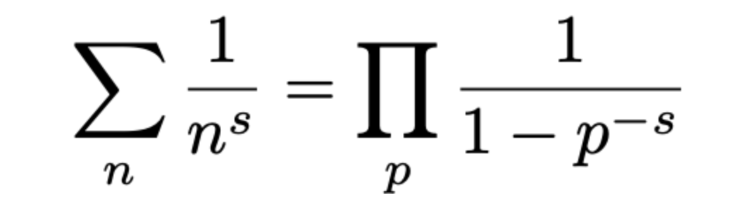 欧拉证明了ζ函数与质数之间的第一个联系,对于n和p两个自然数,其中p是质数: