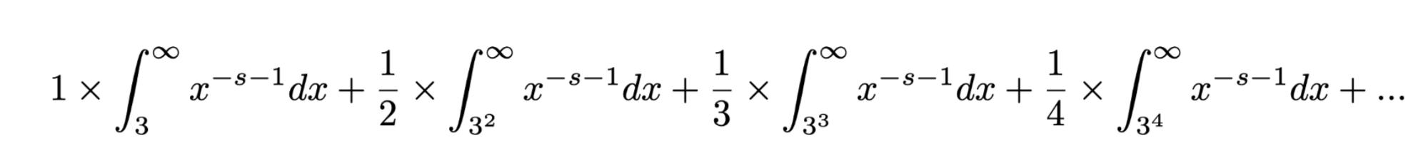 将所有这些无穷和集合成一个积分,黎曼素数计数函数J(x)下的积分可以简单地写成:
