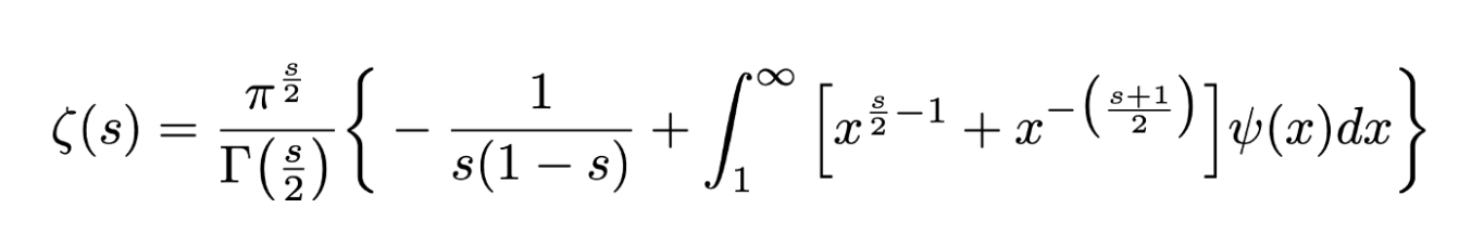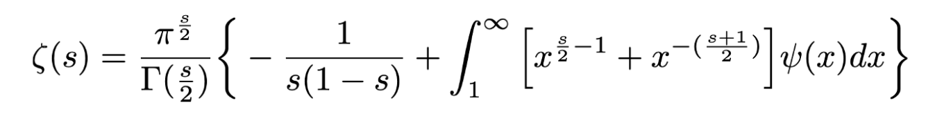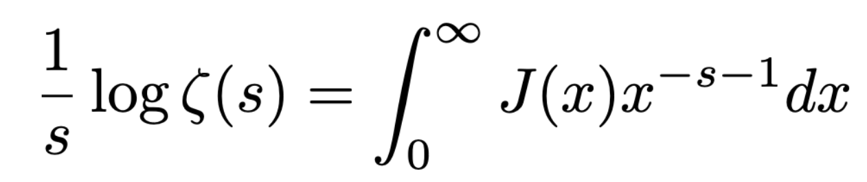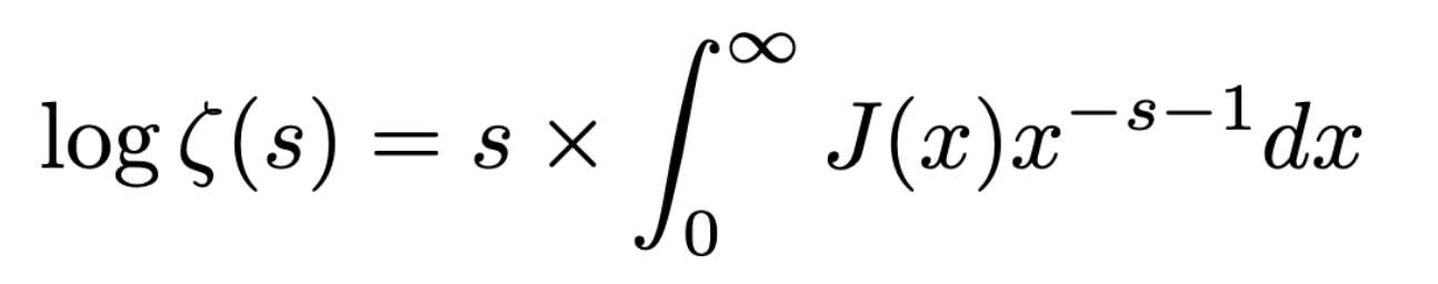 黎曼将ζ函数ζ(s)与黎曼素数计数函数J(x)用微积分的语言写成等价于欧拉积公式的恒等式。