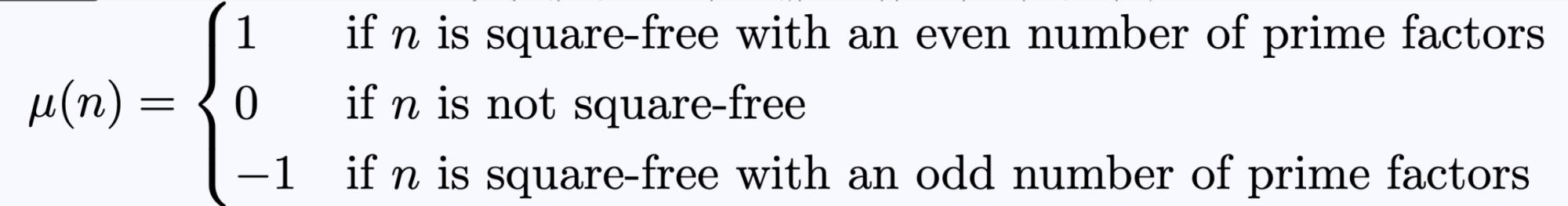 莫比乌斯函数μ(n)只接受三个可能的值: