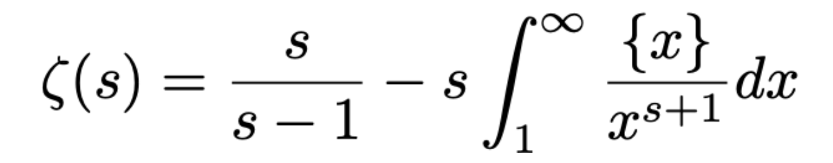 为了在正则收敛区以外的区域分析函数(当复变量s的实部大于1时),需要重新定义函数。黎曼通过解析延拓半平面上Re(s) > 0上的绝对收敛函数成功地做到了这一点。