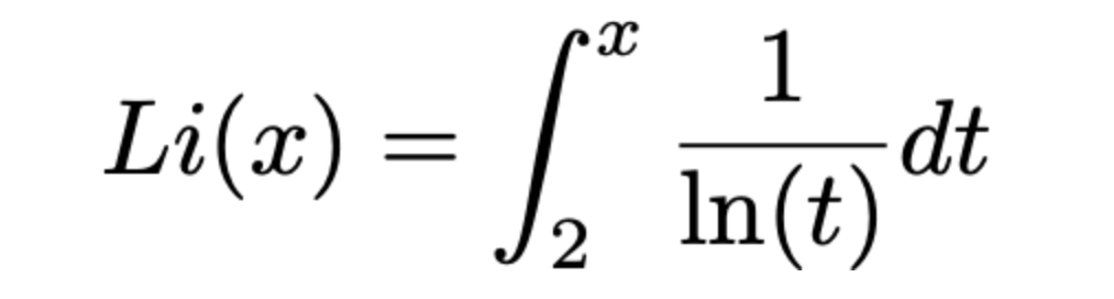函数Li(x)定义为除x = 1外的所有正实数。它由2到x的积分定义:
