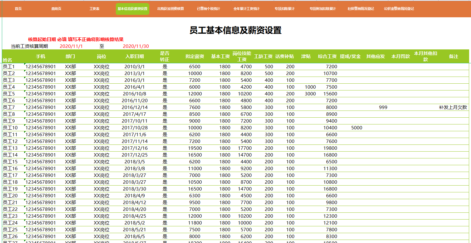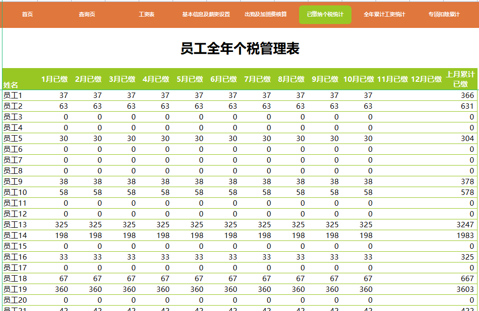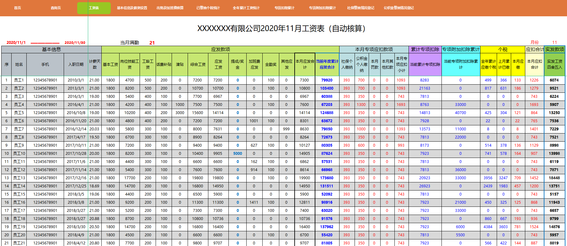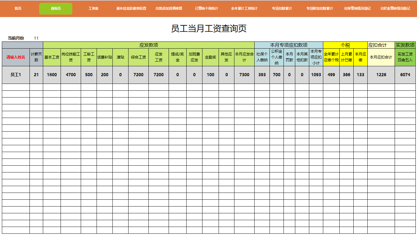 (全自动核算 新税法 按年核算个税 包含专项扣除计算)