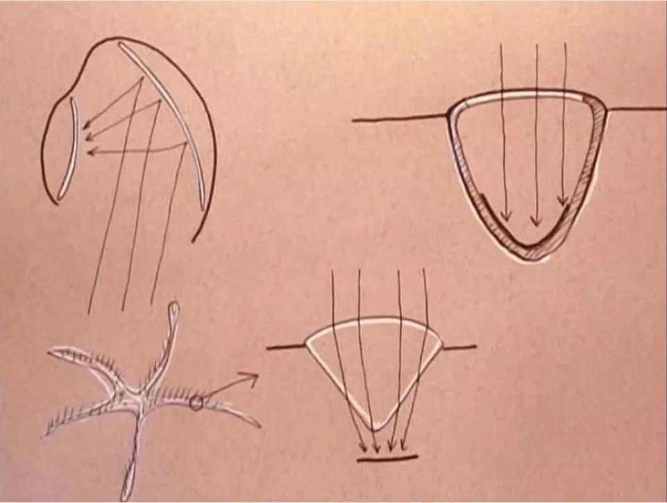 第一次开会讨论时,我们明确了日光是建筑形态最大的驱动因素之一,接着我们研究了呈现生物学中光线聚散方式的一些例子。