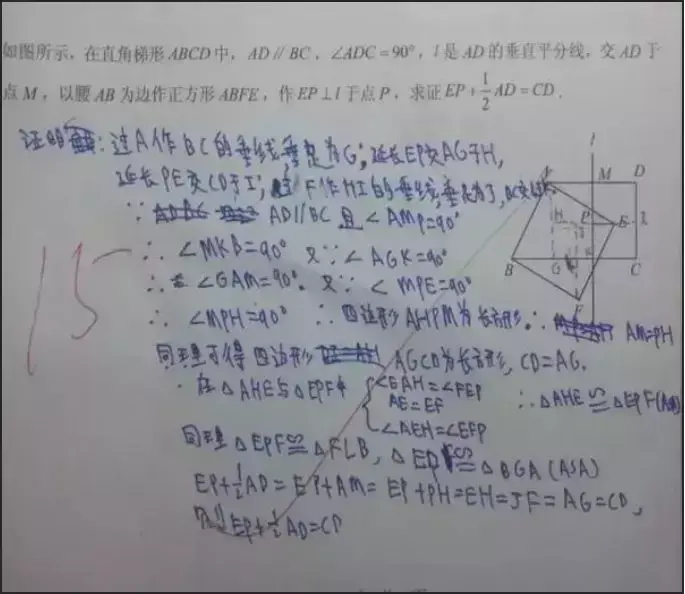 而像这种书写方式,即使最后的答案是正确的,但是看起来会非常的混乱,整体缺少美感,会让阅卷老师觉得看起来非常头疼,人家自然也就不愿意花费太多的时间去找你的答案。