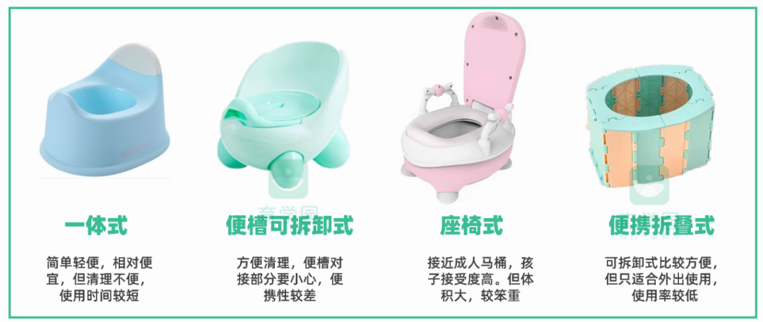刚开始进行如厕训练,最好给孩子买儿童专用的坐便器。款式大概有以下这几种,大家看自己情况买。