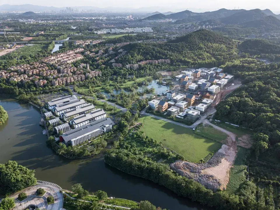 豕山脚下,邱家坞是一座随着城市化进程日渐空巢化的城郊村庄。琉璃瓦、瓷砖、白色塑钢窗,东西方混用的装饰、水泥小路,这是典型的90年代营建的浙东村庄的面貌,被选为各国工业设计协会的常驻机构配套办公和展陈设施地址。
