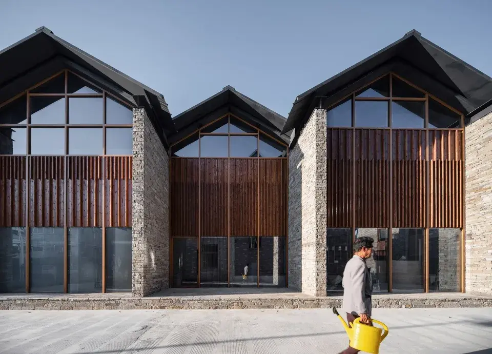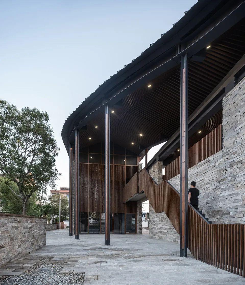 设计策略上采取保持原肌理修复的方法,按照村庄原来房屋的位置和体量重新修建,让当地的戏曲文化重新焕发生机,沿着长长的河道,在错落有致的屋檐之间,流传下去。