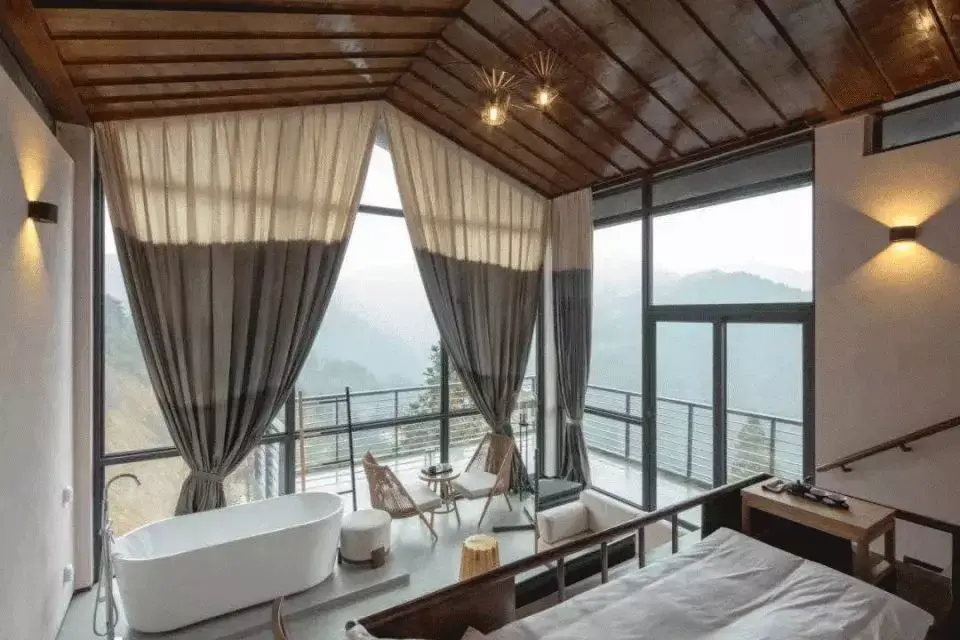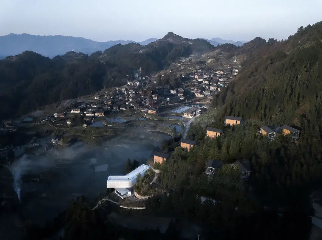 该项目建筑面积2400㎡,包括1650㎡的增量建筑置入和750㎡的存量建筑改造,其中增量部分由8幢单体客房及餐厅、悬崖剧场、无边泳池等公区配套组成,配以登山步道建设及局部景观修复,以此带动整个村落的生活生产动线以及未来发展的文旅产业流线。