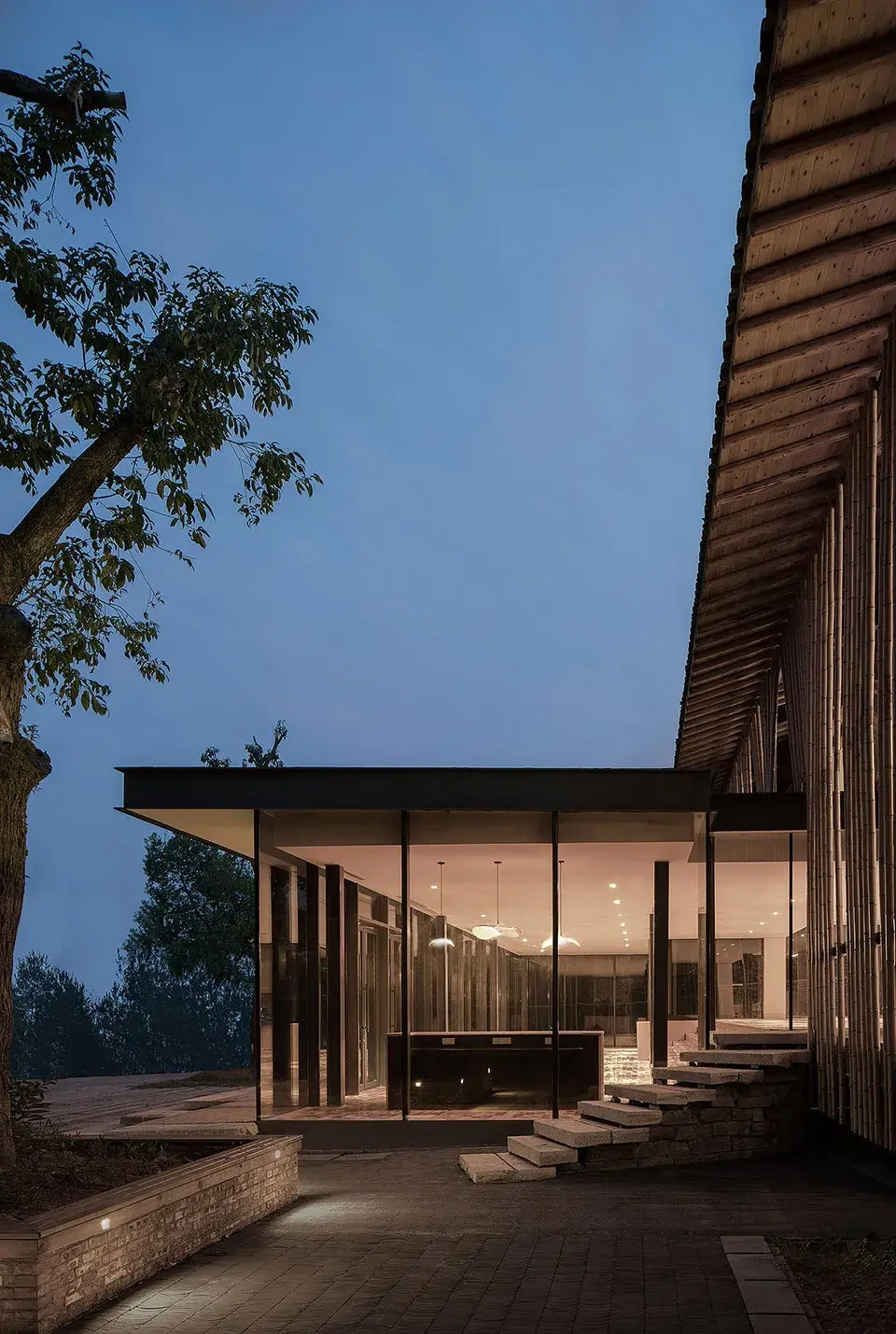 远古的遗迹、乡村民房、现代建筑都借由夯土与清水混凝土的对比,实现了穿越时空的对话。