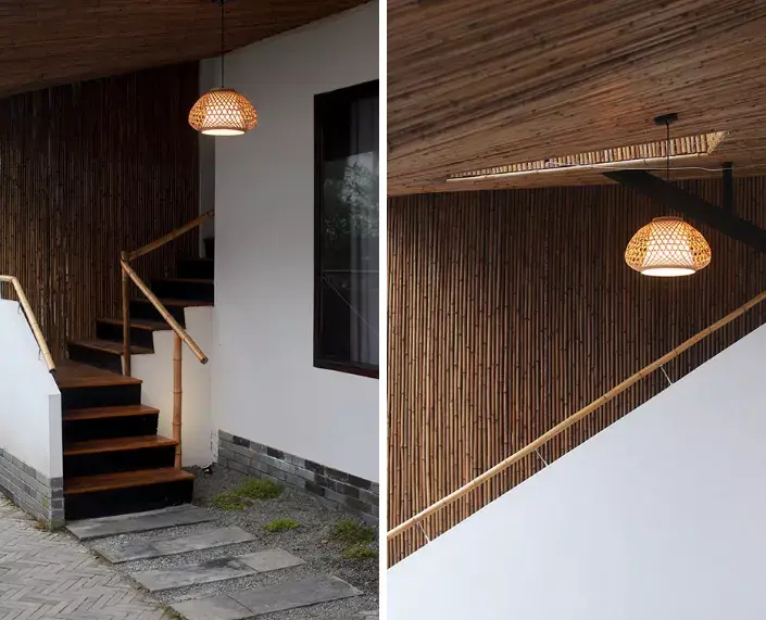 设计团队结合竹子外立面建造了一座砖城堡。抛光的砖地面令人惊叹,它就像古老的泥土,只有温暖的触感,新建房屋遵循村庄建筑类型,全部使用本地材料,刻画了与既有村落在时间和空间上融为一体的建筑特征。