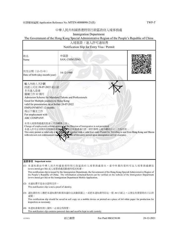 但需要说明的是专才不可以随意换工作,需要经过入境事务处的同意,因为是公司专门聘用你的。签证的获批也是按照“2+3+3”的模式(顶尖人才是2+6),直至七年获得永久居民资格。
