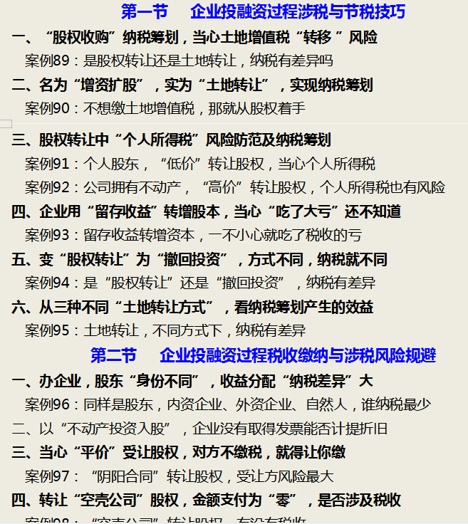 今天在这里跟大家分享一下财务总监汇总的180个税务筹划案例,都是工作中整理的筹划案例,即学即用!