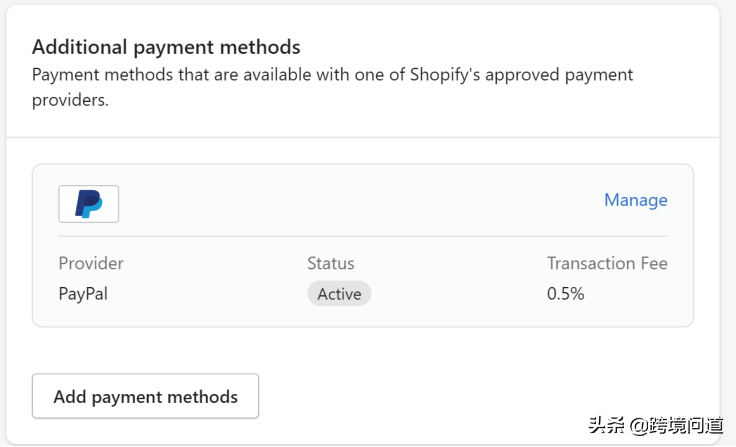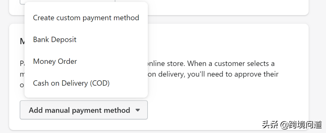 除了以上便捷的在线支付方式之外,Shopify还提供银行转账,以及货到付款等多种其他收款方式。大家可以按照自己的实际需求去激活使用。