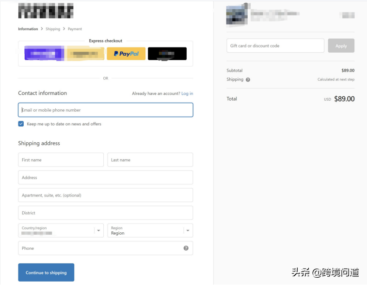 如下图:Rio把网站地址切换为香港就会出现shopify payments的相关提示。(因为Rio有使用国内第三方的信用卡收款,就不做进一步的展示了)