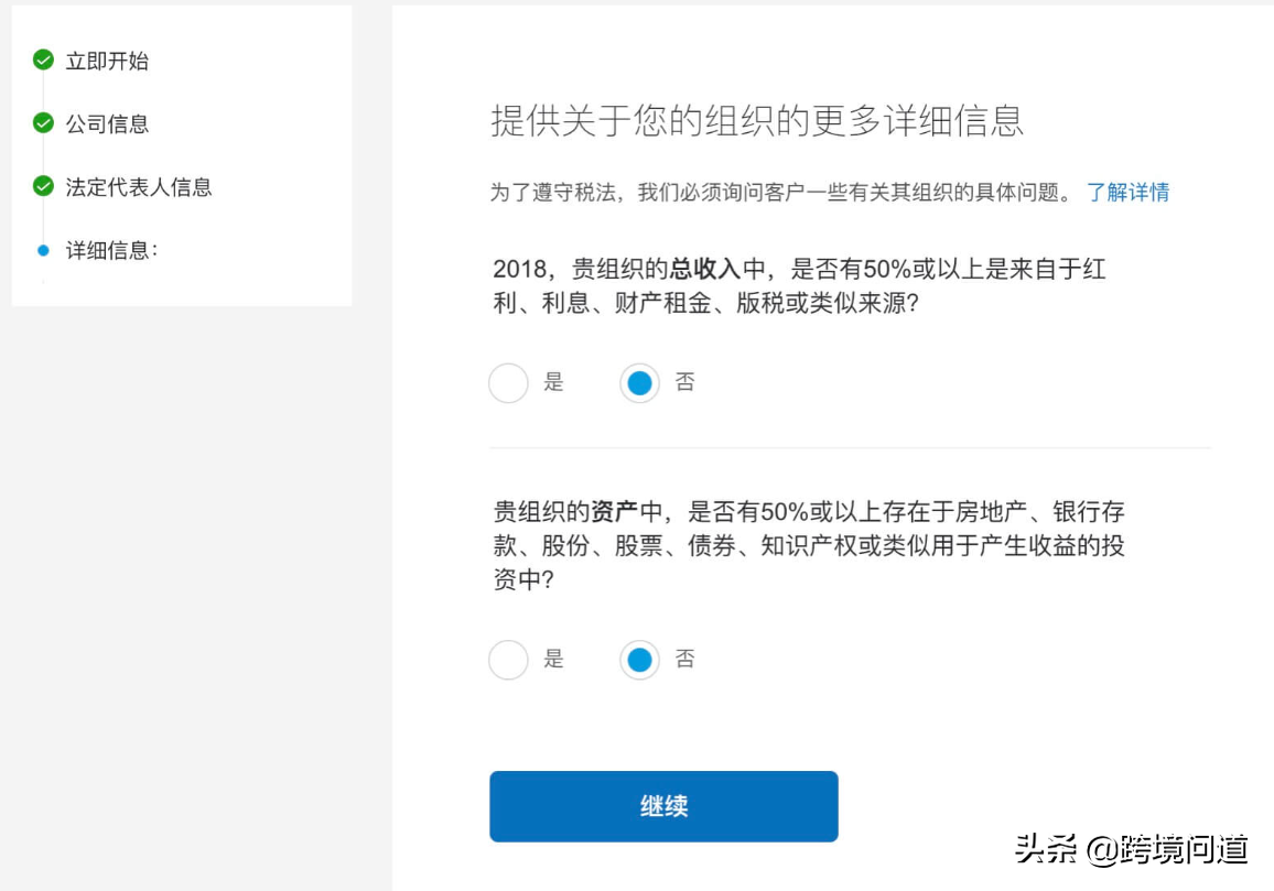 第六步、对于对shopify店铺来说,我们直接选择“否”就可以,然后点击“继续”下一步。