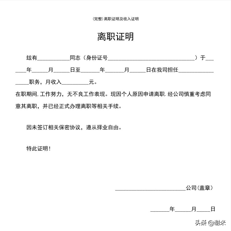 再者,离职证明上写明了岗位、日期等内容,一般情况下,老单位都会如实填写,它能帮助员工证明自己过往的经验,是有利于员工下一份工作的。