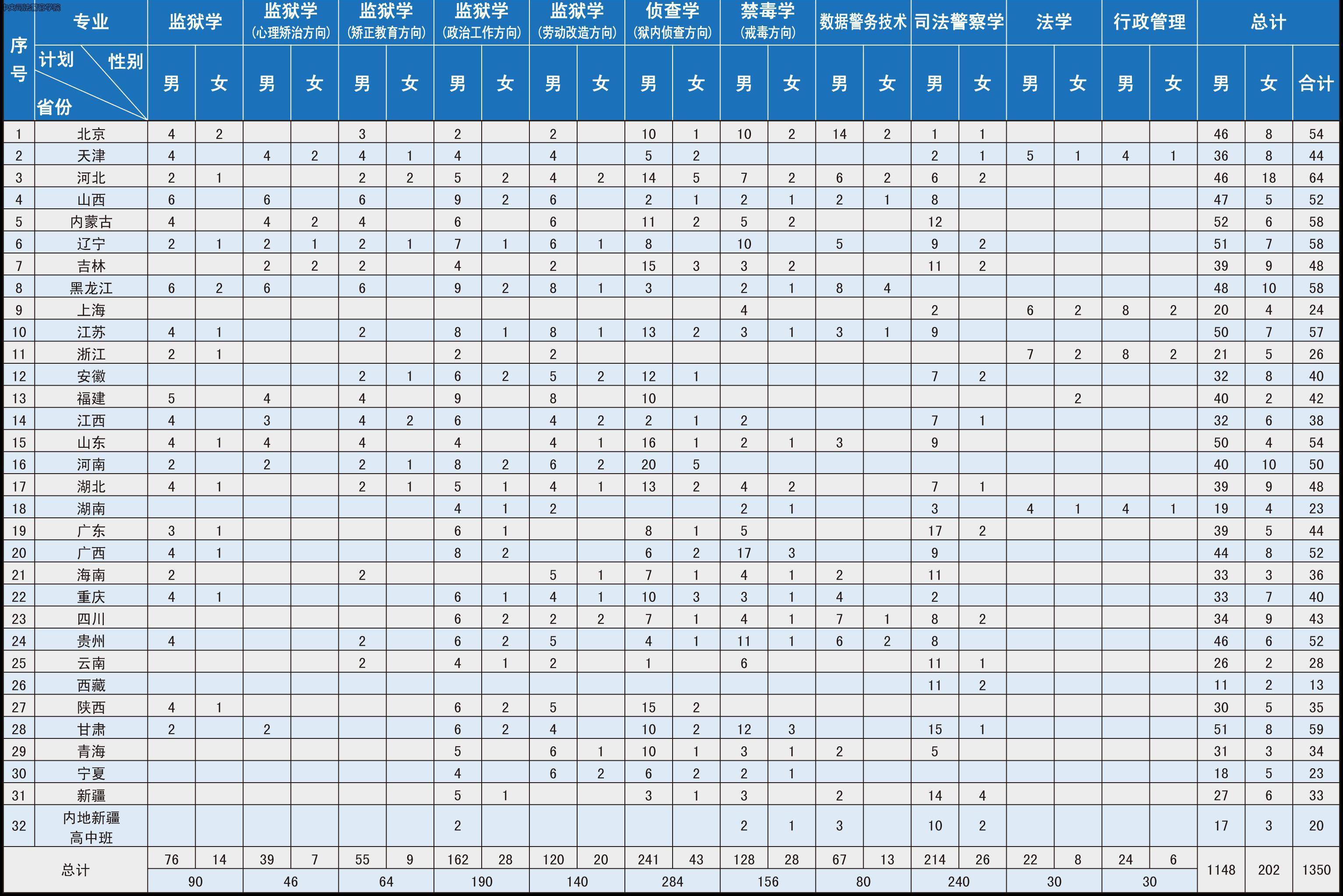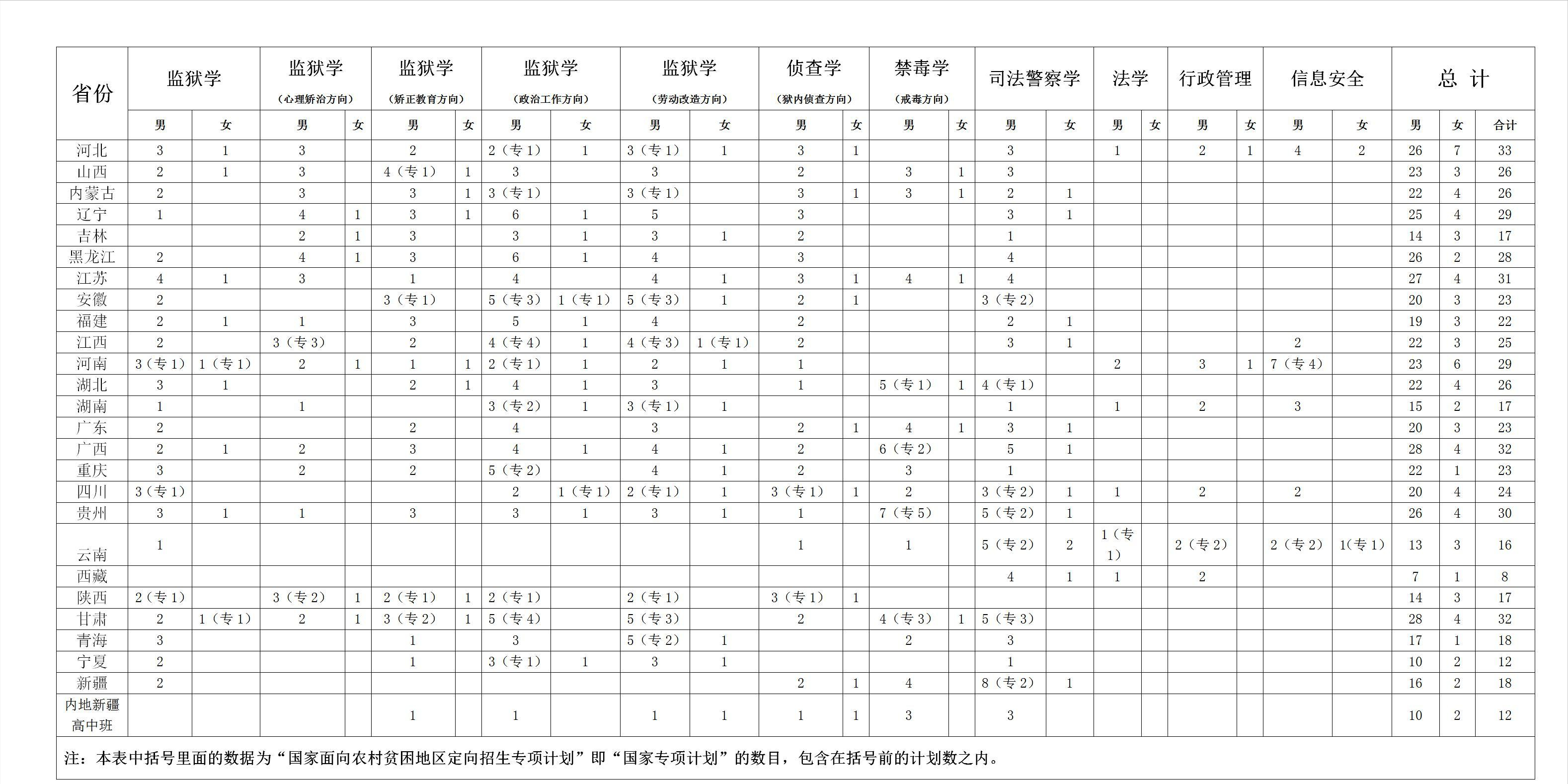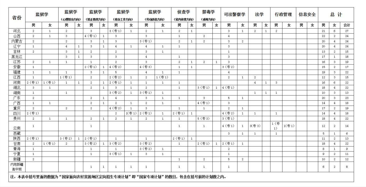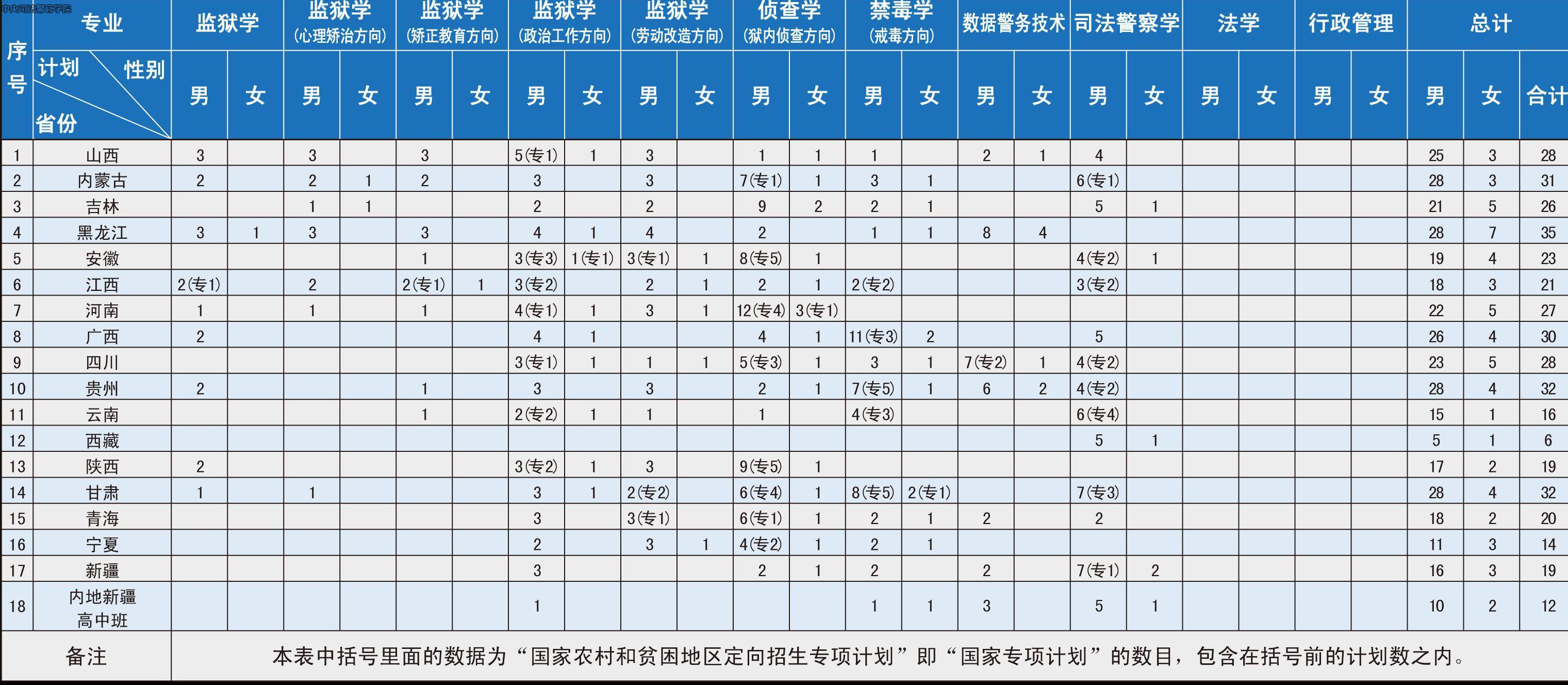 2022年中央司法警官学院报考指南!近年来招生计划及各省的录取分数(20~21年):