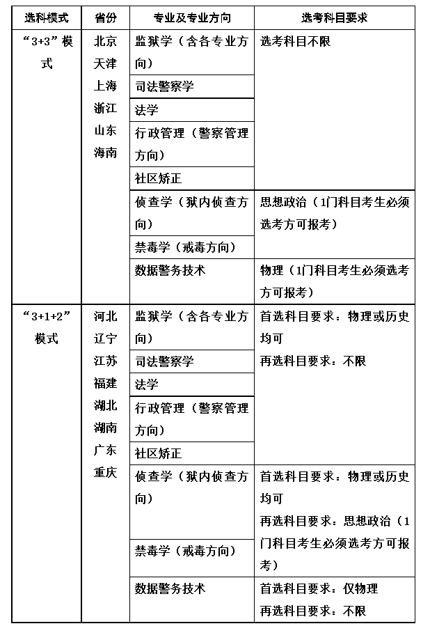 数据警务技术要求必选物理科目,其他不限;侦查学和禁毒学要求必选政治科目。