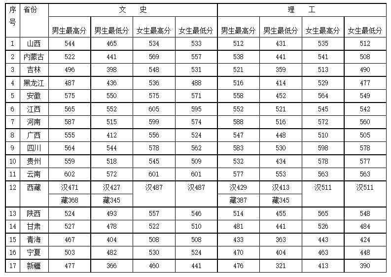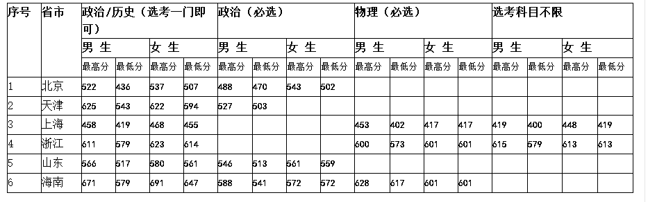 中央司法警官学院是司法部直属的唯一的一所本科司法类警校,每年的招生控制线为二本线招录。3+1+2地区侦查学和禁毒学录取分数:历史组男生在500-570分,女生在570-590分;物理组男生在431-580分,女生在550-590分。数据警务技术录取分数:物理组男生在530-570分,女生在550-590分。普通高考地区男生在400-600分,女生在500-600分,因为每个地区的录取情况不同,分数这个也没法儿讲,总之在二本线以上,600分以下的区间,超过600分都可以报公安院校了,中央司法警官学院每年的具体分数情况可以看文章后面各省的录取分数表。