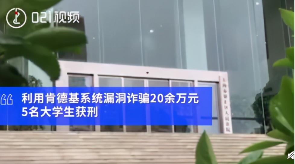 4、大学生利用漏洞免费吃肯德基获刑 在校大学生徐某利用肯德基APP客户端和微信客户端之间数据不同步的漏洞,骗取兑换券或取餐码,出售牟利,并将犯罪方法传授给同学,造成肯德基损失20余万元。近日,上海徐汇法院开庭审理此案,徐某等五人因犯诈骗罪、传授犯罪方法罪被判有期徒刑两年六个月至一年三个月不等。(@021视频)