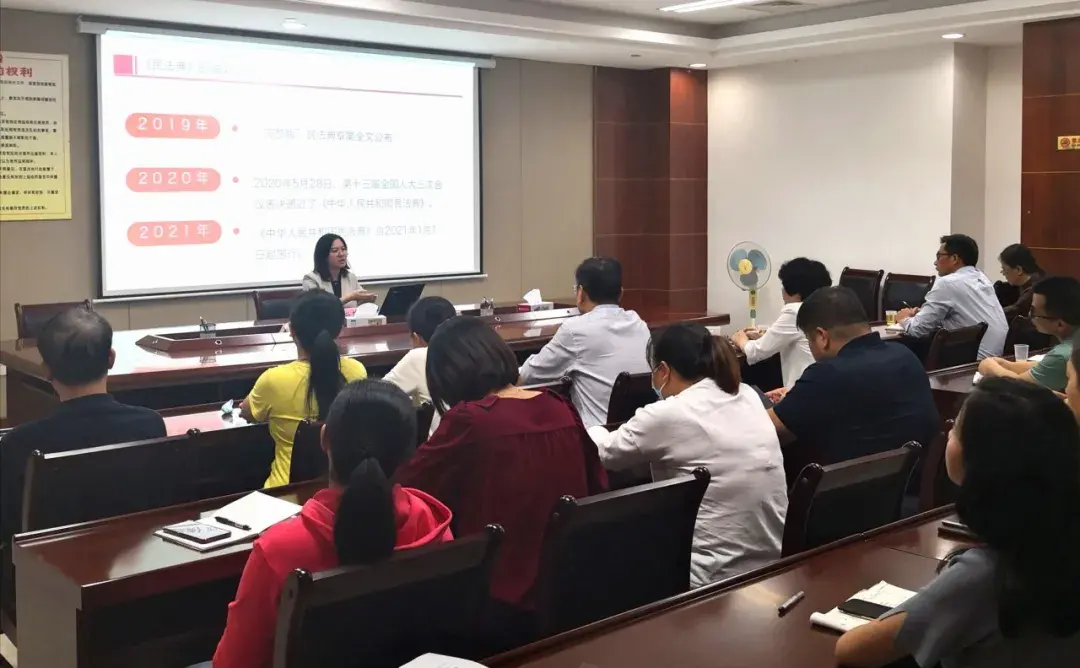 王律师以《<民法典>与生活同行》为题,从民法典的编纂历程概述、民法典体系和民法典的亮点与应用等方面,以法律理论知识和实际案例相结合的形式,重点讲解了与大家工作和日常生活息息相关的知识,帮助大家加深对《民法典》条文的理解,有效激发干部职工的学习兴趣和热情。